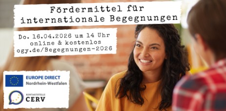 Die EUROPE DIRECT Zentren Nordrhein-Westfalen und die Kontaktstelle CERV laden Sie herzlich zu einem kompakten und praxisnahen Online-Seminar ein, das die Förderschwerpunkte und Prioritäten der CERV-Antragsrunde 2026 in den Fokus rückt.