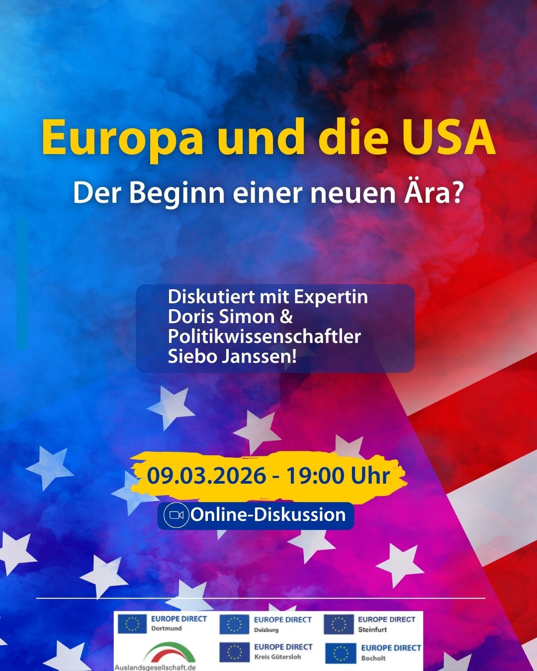 Die Veranstaltung findet als Videokonferenz über Zoom statt und ist eine Kooperation mit den Europe Direct Zentren Bocholt, Duisburg, Gütersloh und Steinfurt. Die Teilnahme ist kostenlos.