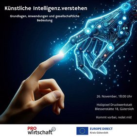 In der heutigen Welt spielt Künstliche Intelligenz (KI) zunehmend eine zentrale Rolle. Doch was genau ist KI und wie funktioniert sie? Diesen Fragen möchten das EUROPE DIRECT Kreis Gütersloh und seine Trägerorganisation, die pro Wirtschaft GT GmbH, in Form eines Bürgerforums auf den Grund gehen. Für diesen Zweck stellt Manfred Makowski seine Holzpixelwerkstatt in Gütersloh zur Verfügung.