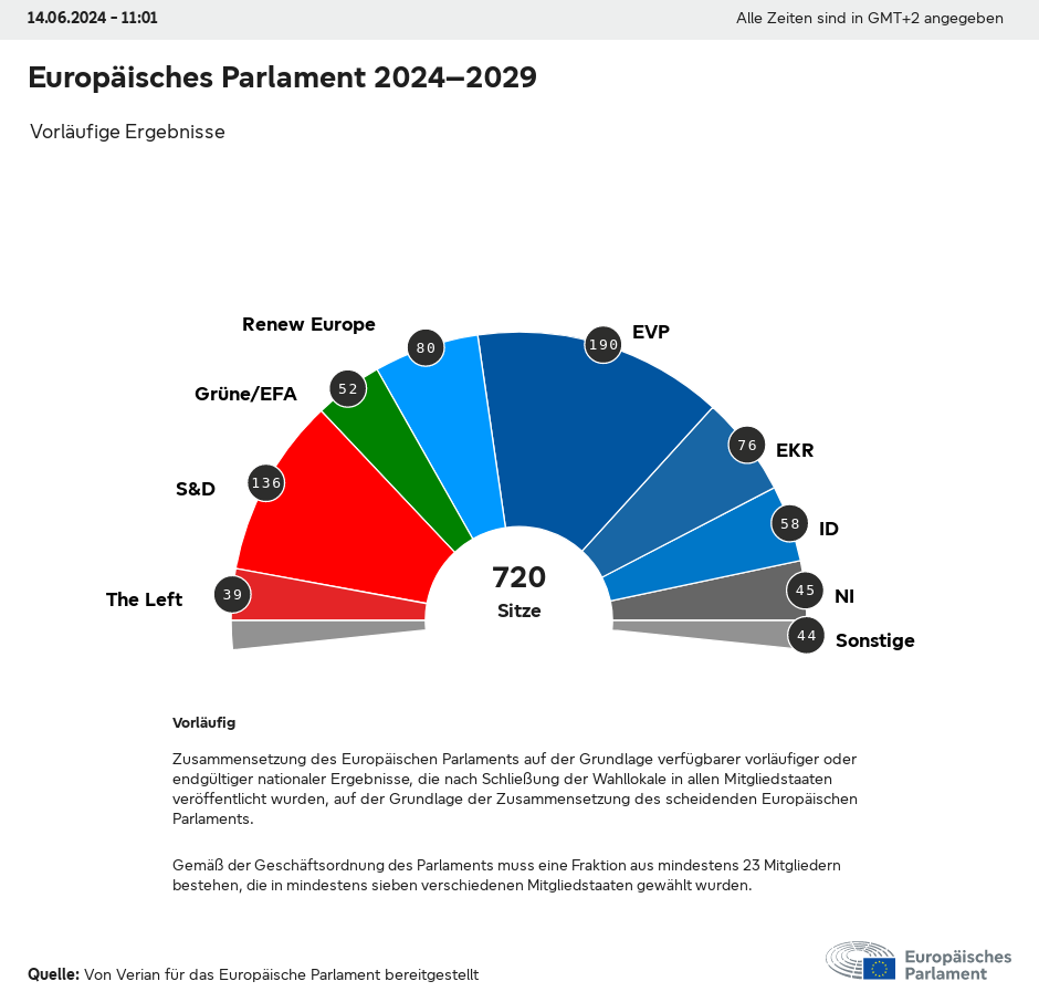 Vom 06. bis zum 09. Juni 2024 wurden in allen 27 Mitgliedstaaten der Europäischen Union die insgesamt 720 Abgeordneten des Europäischen Parlaments gewählt. Den Anfang in den Wahllokalen machten die Niederlande am 06. Juni; in Estland war eine Stimmabgabe dank des E-Voting-Systems des Landes bereits am 03. Juni möglich. Mittlerweile stehen die vorläufigen Ergebnisse fest:
