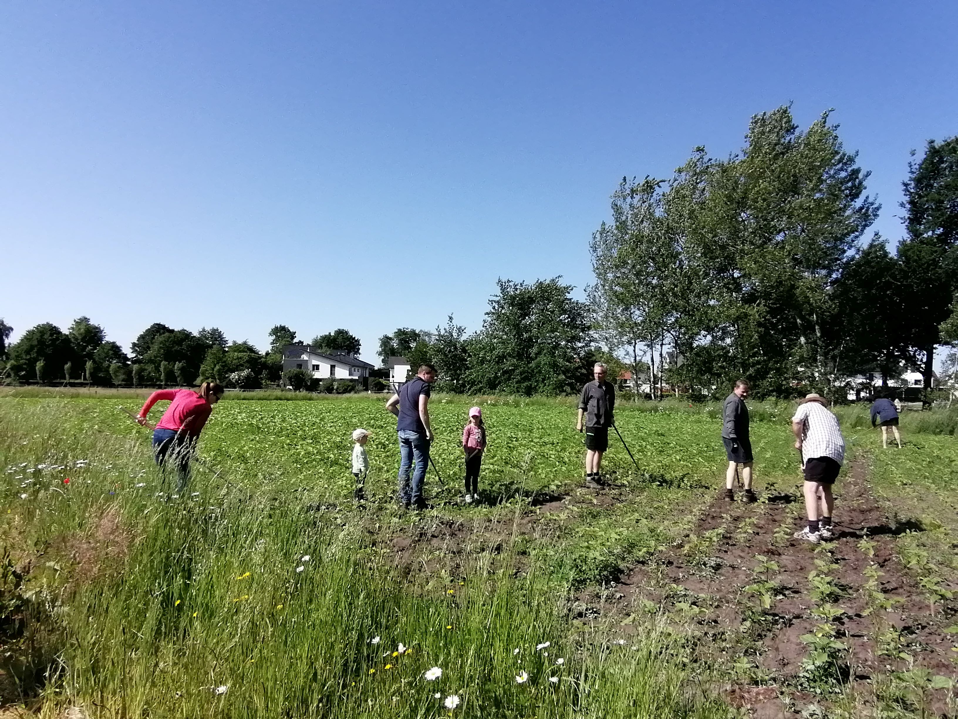 Nach dem erfolgreichen Kartoffelanbau-Projekt vom Vorjahr wurden im Frühjahr 2023 Sonnenblumen ausgesät. In unmittelbarer Nähe des Feldes wurden außerdem zehn Insektenhotels aufgestellt. In den folgenden Wochen beteiligten sich Freiwillige in regelmäßigen Abständen an der Pflege des Feldes, z. B. durch Hacken der Wildkräuter, da auf den Einsatz von Spritzmitteln komplett verzichtet werden sollte. Im Herbst erfolgte dann das Dreschen der Sonnenblumen durch Einsatz eines Mähdreschers mit einem speziellen Schiffchenmähwerk. Es wurden insgesamt ca. 500 kg Sonnenblumen geerntet. Nach einigen Tagen der Trocknung wurden die Sonnenblumenkerne zum Hof Broeker in Schloß Holte gebracht, wo die Pressung erfolgte. Nach einigen Tagen konnte dann das Sonnenblumenöl abgefüllt werden, sodass im November insgesamt 315 Flaschen von der Ölmühle abgeholt wurden, um dann mit einem selbstgestalteten Etikett versehen zu werden. Die Helferinnen und Helfer freuten sich über das Ergebnis und blickten dankbar auf eine tolle Aktion zurück, die den Ortsteil im Verler Westen erneut näher zusammengebracht hatte.