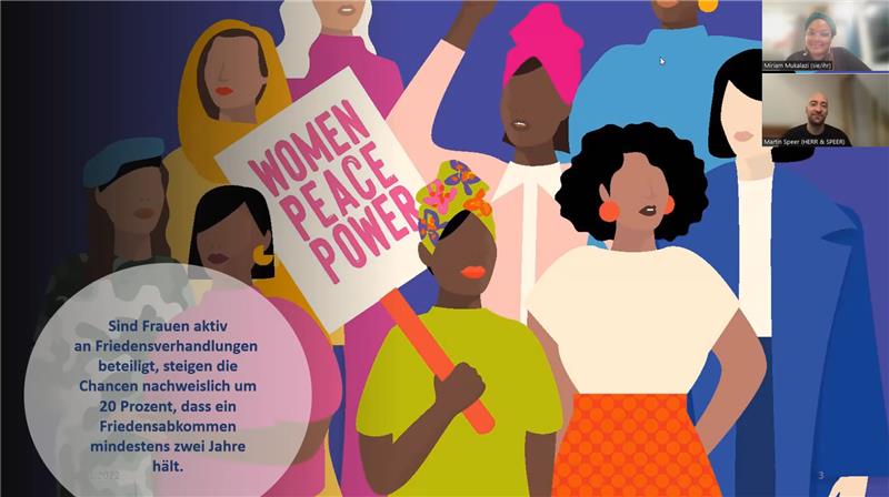Anfangen könne man mit einer feministischeren Friedens- und Sicherheitspolitik, denn Studien zeigten, dass Friedensverträge, in welchen Frauen involviert waren, länger halten als solche, welche rein von Männern geschlossen worden sind. Gründe hierfür wurden im Plenum diskutiert, Frau Mukalazi ist es dabei auch wichtig zu betonen, was es für unterschiedliche Lebensrealitäten unter Frauen geben kann.