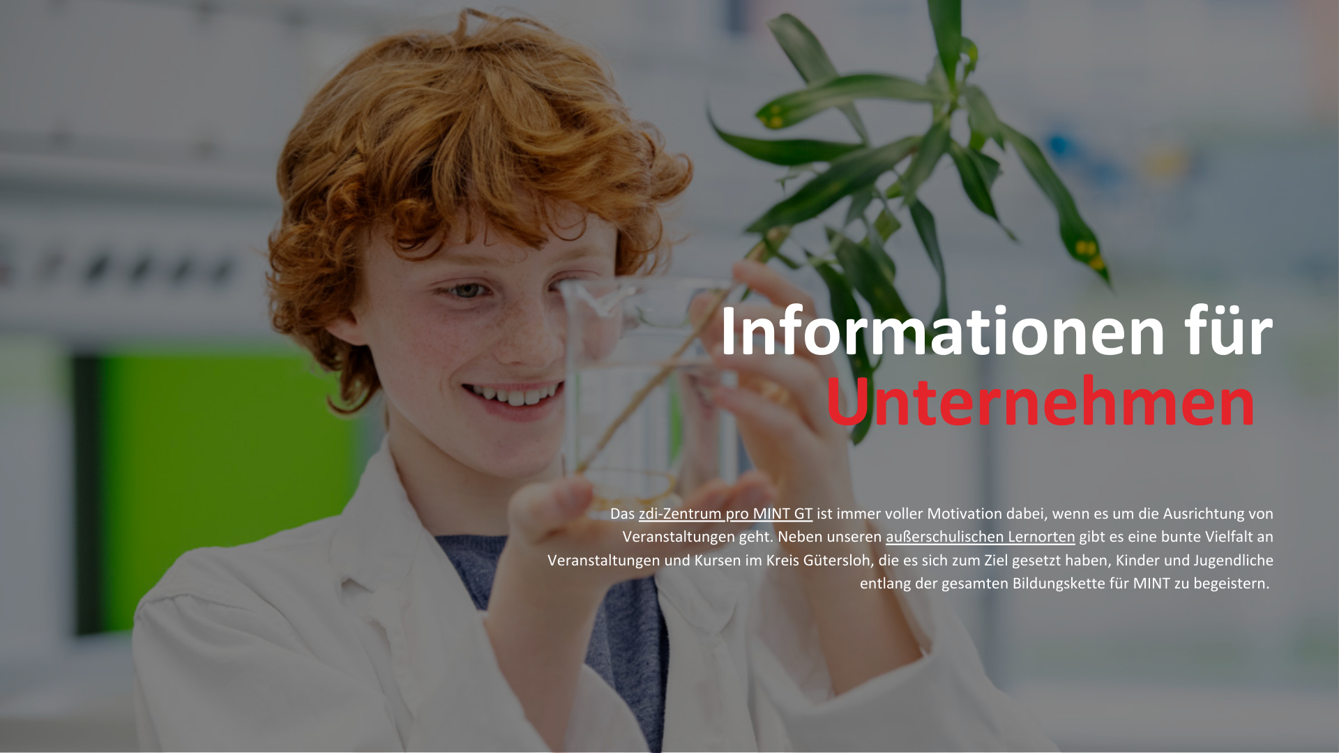 Das zdi-Zentrum pro MINT GT knüpft als Netzwerkinitiative Verbindungen zwischen MINT-Akteuren wie Unternehmen, Schulen und Vereinen. Durch praktische Kooperationen sammeln Schüler*innen sowohl theoretisches als auch praxisnahes MINT-Wissen. Gemeinsam begeistern wir die Nachwuchskräfte von morgen für MINT-Berufe.